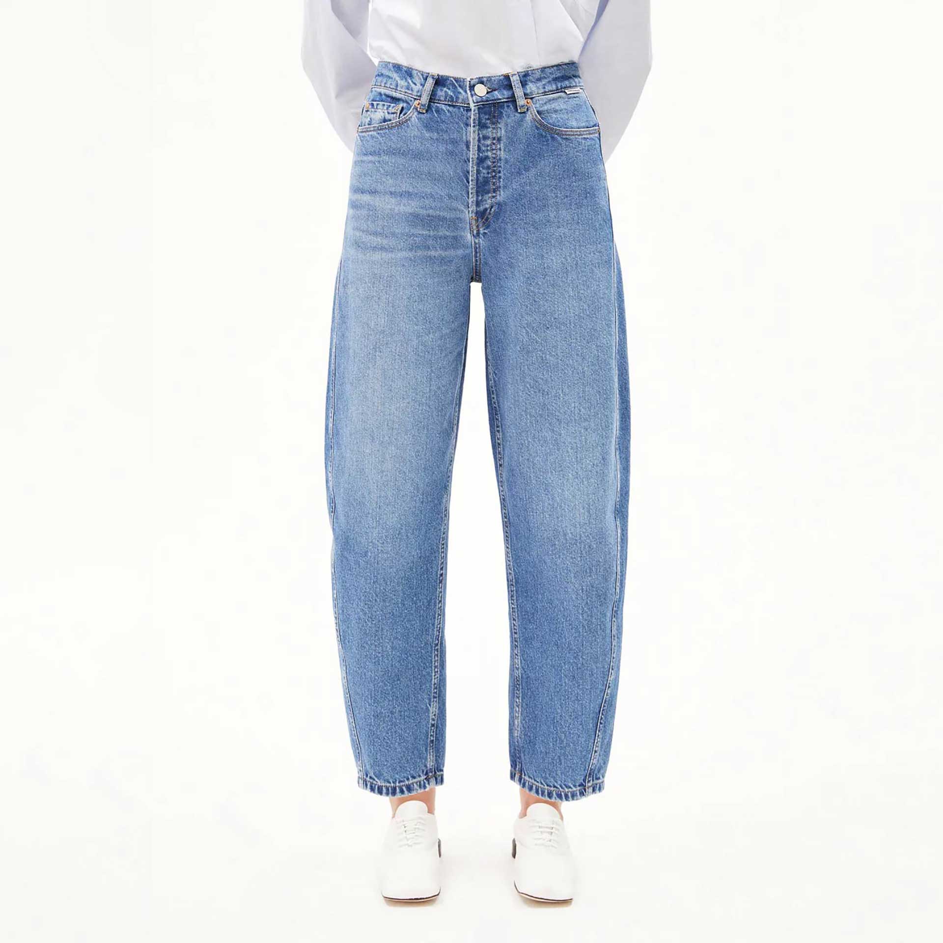 Dit is een moderne spijkerbroek met loop, ontworpen met een hoge taille en een ontspannen, gestructureerde pasvorm. Hij is b… Volledige productomschrijving...