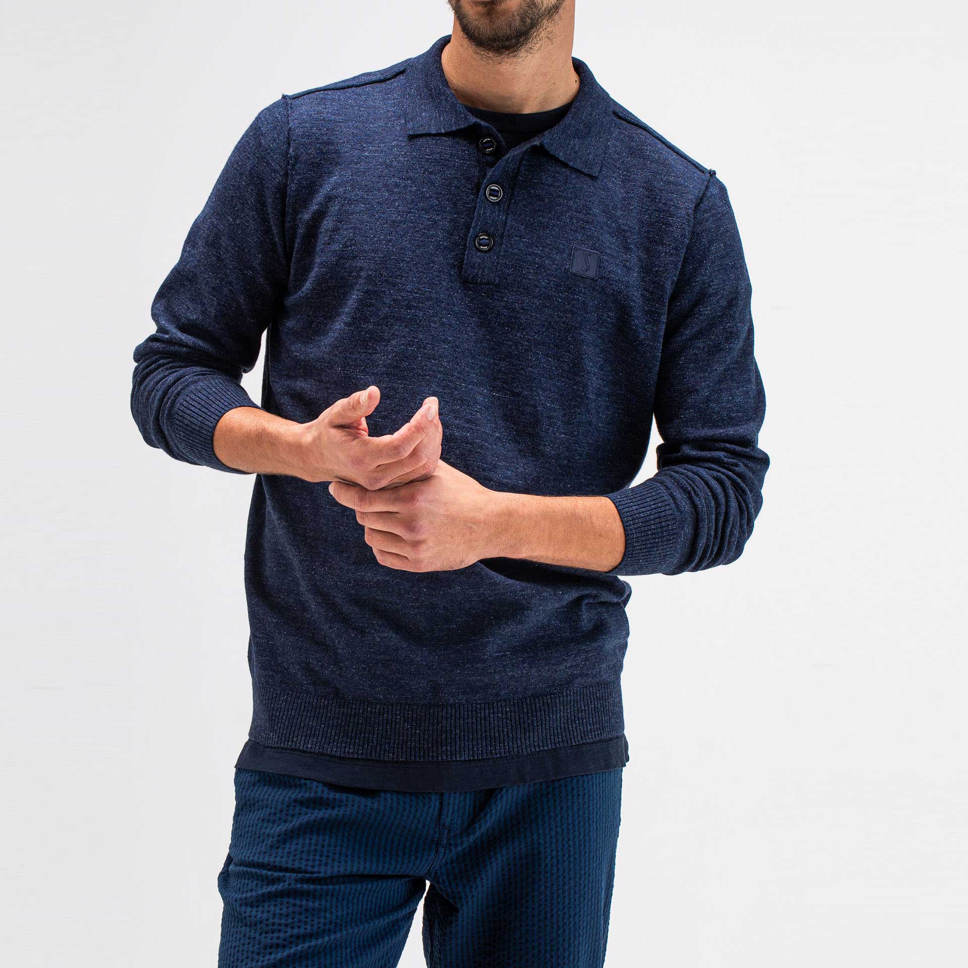 Dit overshirt heeft lange mouwen, een kraag en klepzakken op de voorkant.