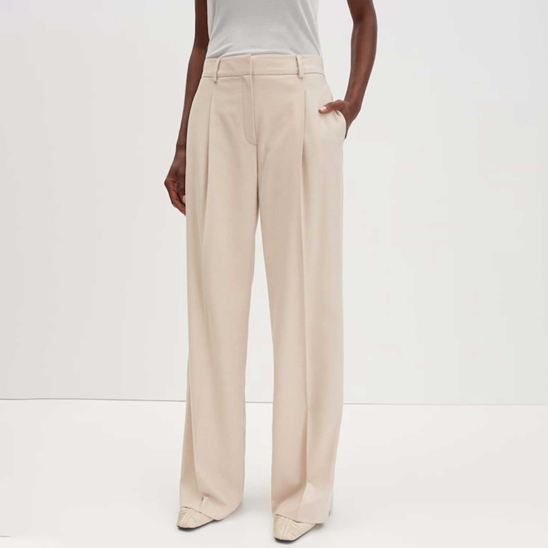 Deze broek heeft een knoop- en ritssluiting en riemlussen.