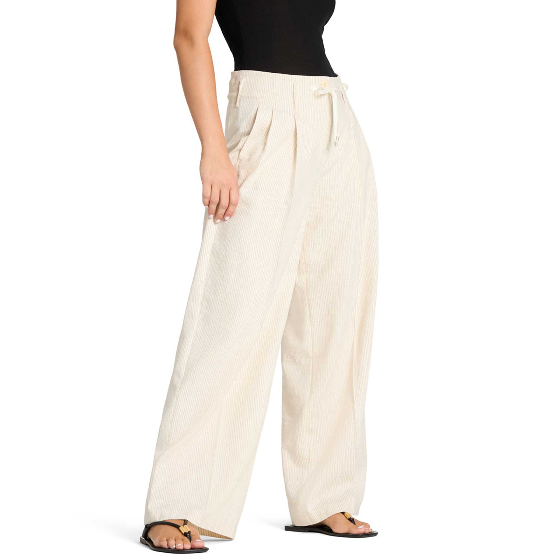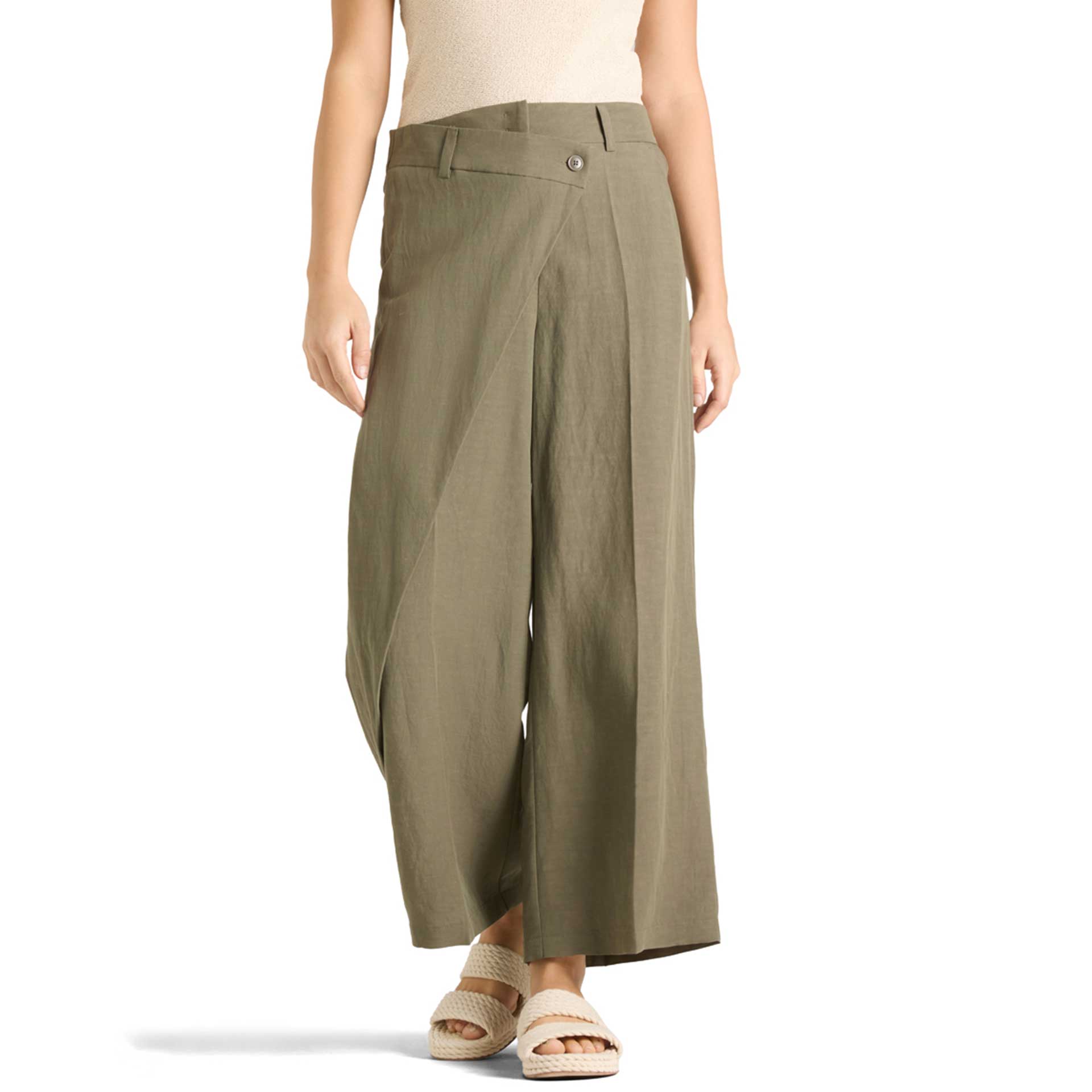 Deze broek heeft een knoop- en ritssluiting en riemlussen.