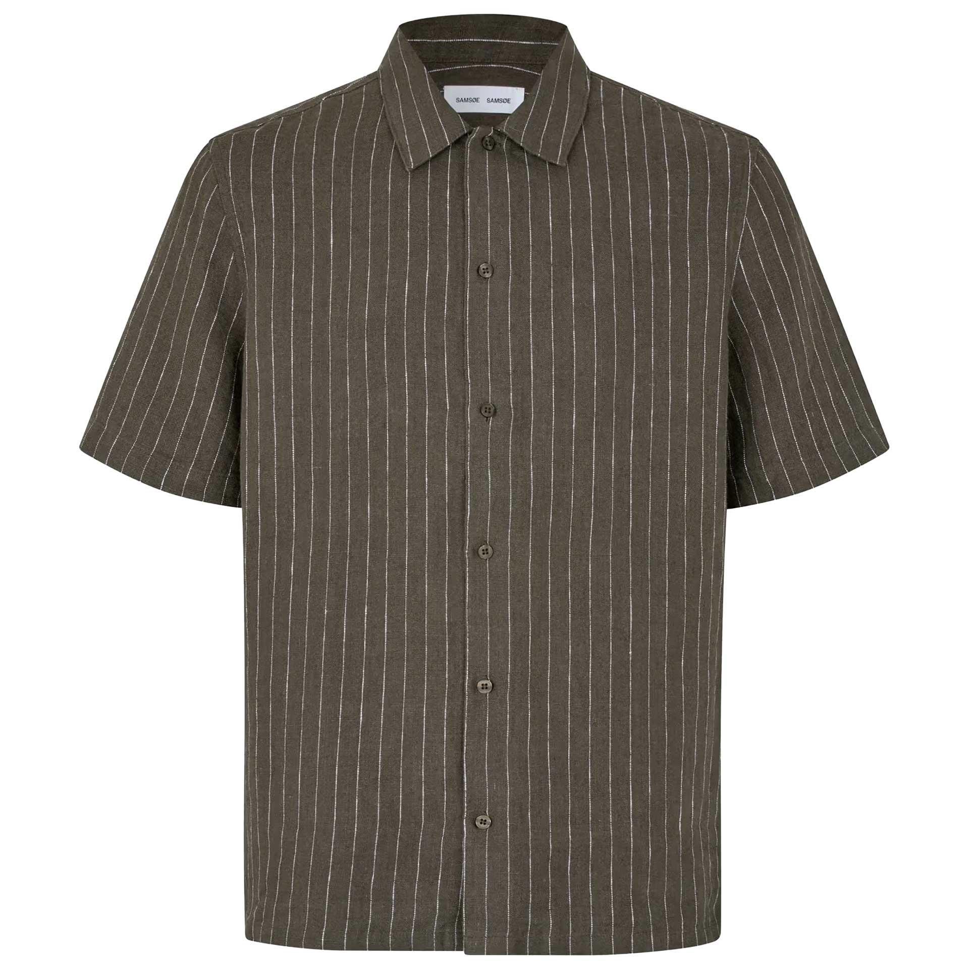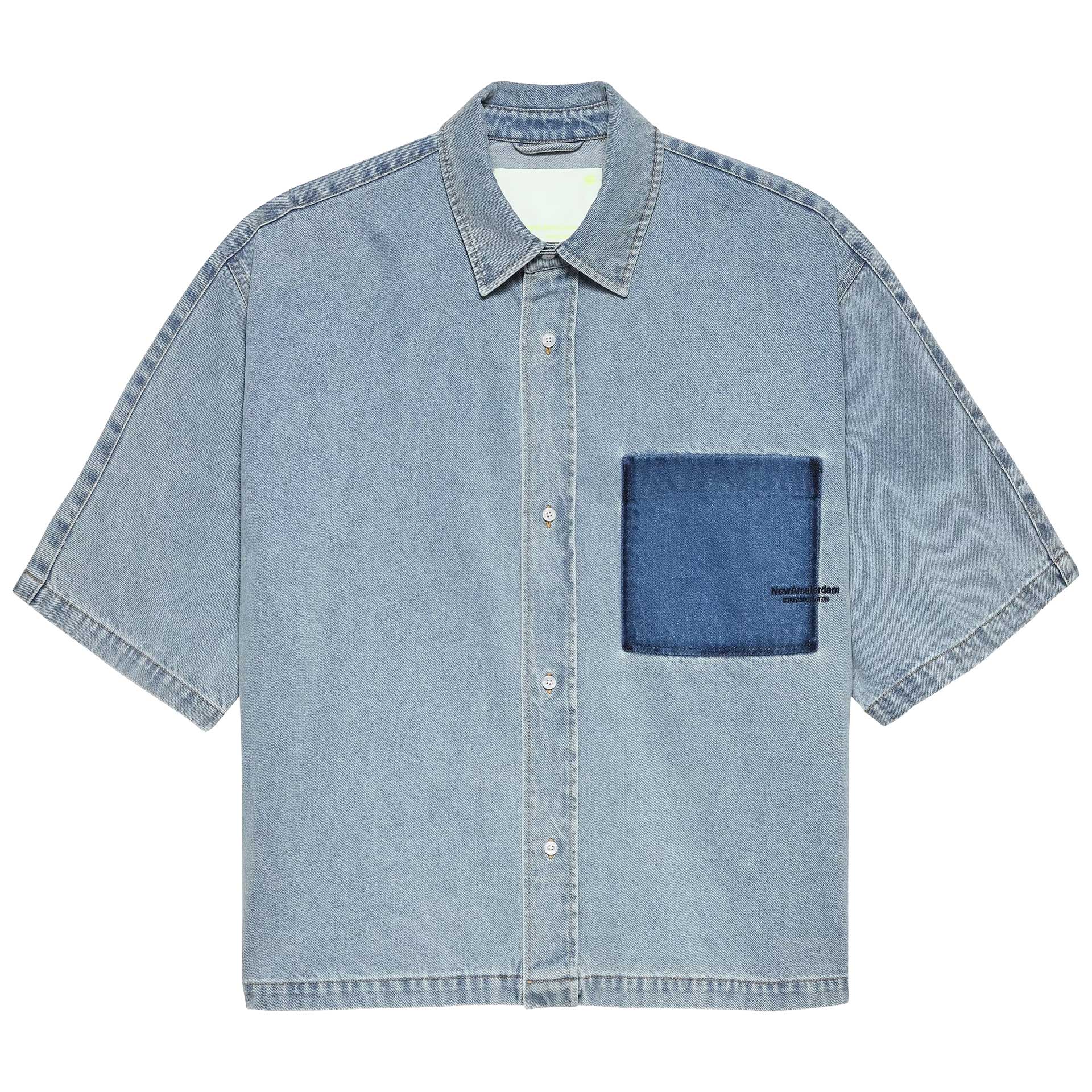 Dit overhemd heeft korte mouwen, een kraag en een knoopsluiting aan de voorkant.