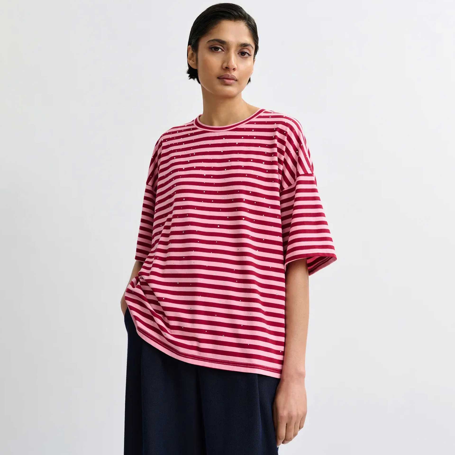 Essentiel Antwerp is een modemerk dat bekend staat om zijn opvallende en speelse ontwerpen. Wat begon als een klein T-shirtmerk in 1999, is uitgegroeid tot een kleurrijk label met een unieke Belgische stijl. De collecties zitten vol grafische prints, felle kleuren, glitter en pailletten, waardoor elk item een echte eyecatcher is. De kleding van Essentiel Antwerp straalt lef en zelfvertrouwen uit en brengt een mix van luxe en plezier in je garderobe. Het merk richt zich op vrouwen die houden van mode met een statement en niet bang zijn om op te vallen.