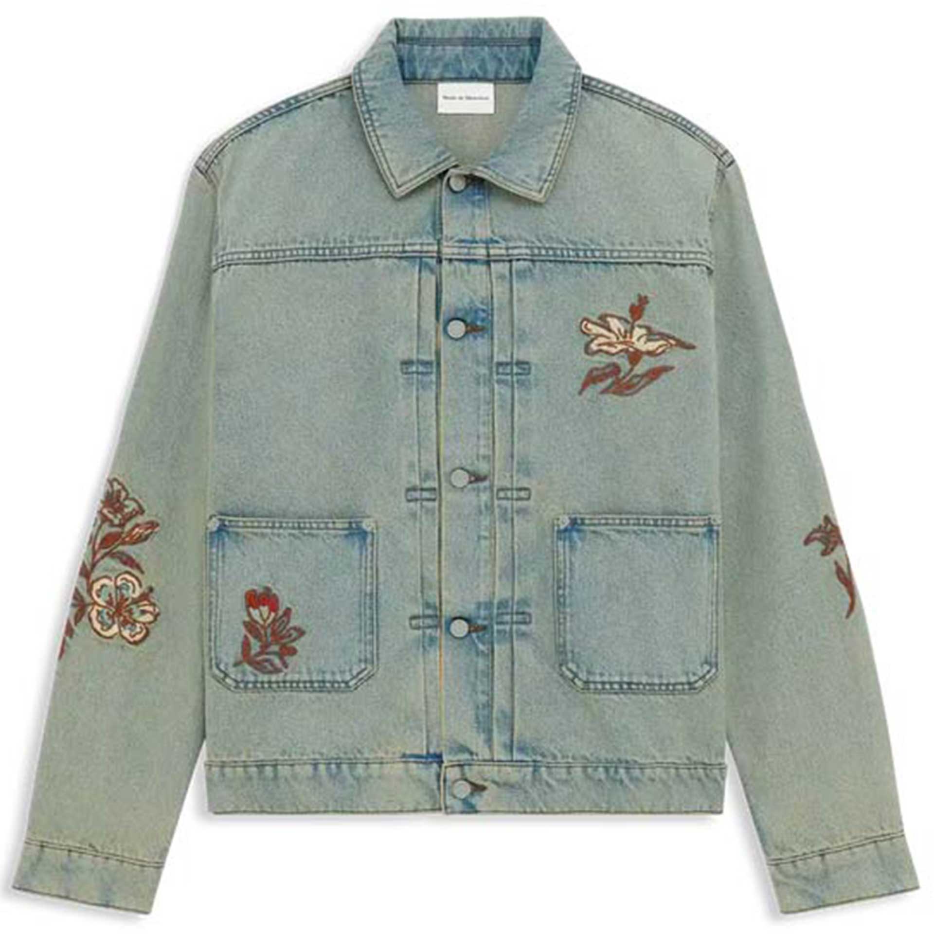 Deze jas heeft lange mouwen, een opstaande kraag, zakken en een print op de voor- en achterkant.