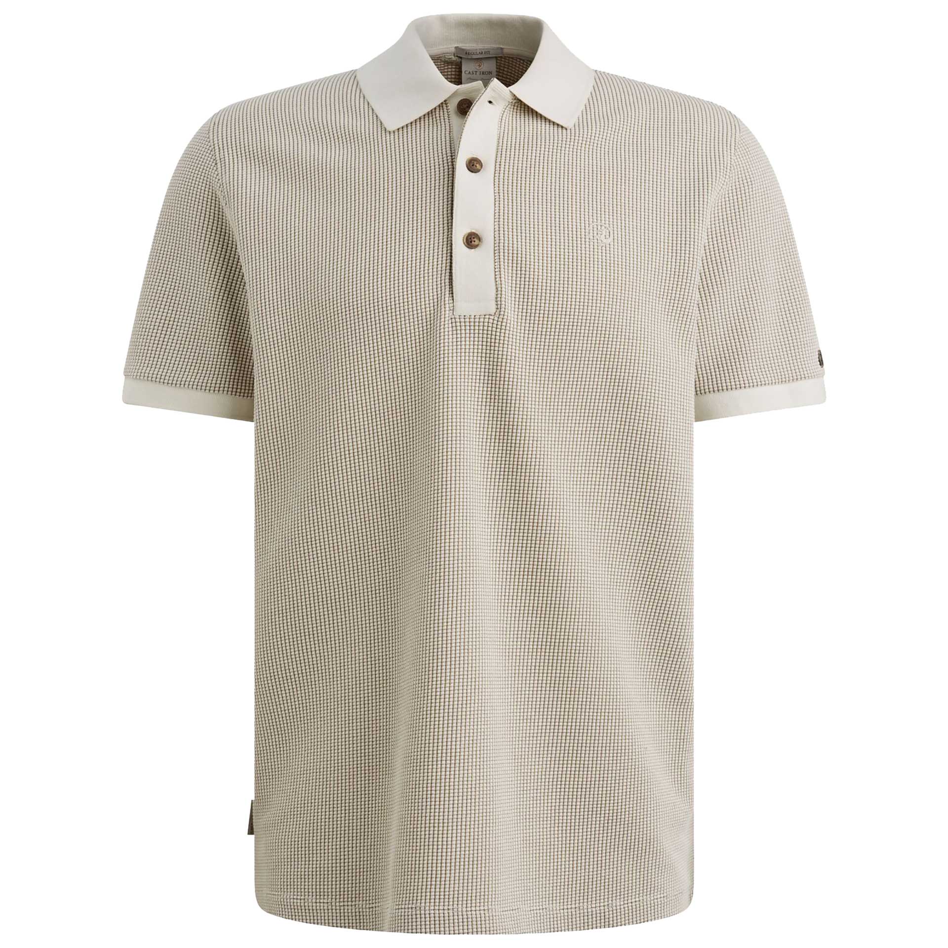 Deze polo heeft een kraag met knoopsluiting en korte mouwen.
