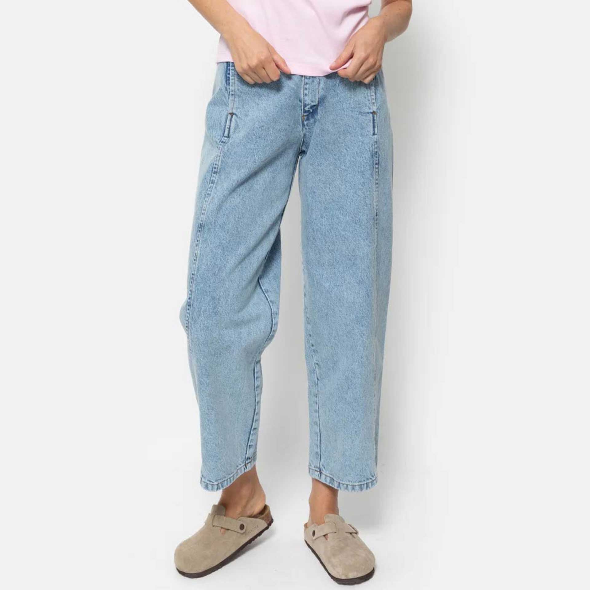 Deze jeans heeft een losse pasvorm, een knoop- en ritssluiting aan de voorkant. Vijf zakken en riemlussen.