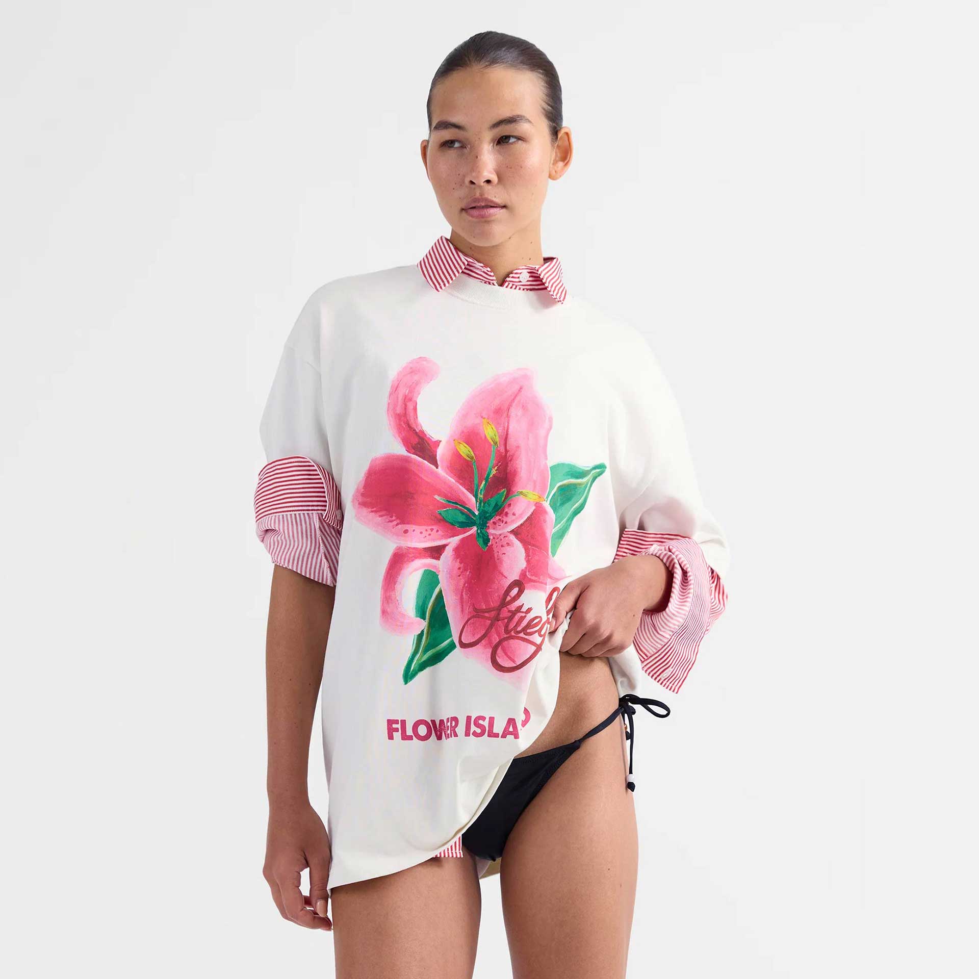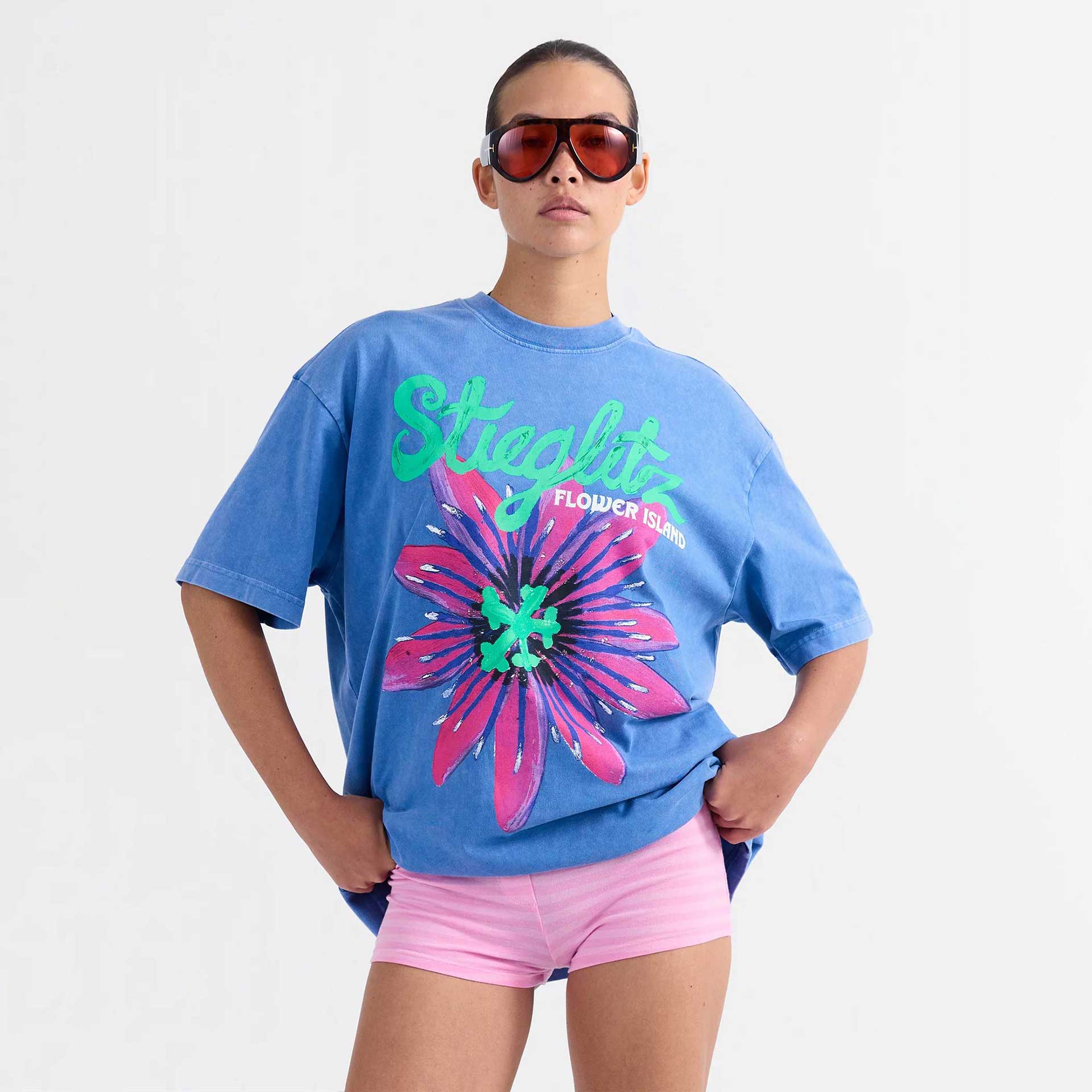 Dit oversized T-shirt heeft korte mouwen, een ronde hals en een print op de voorkant.