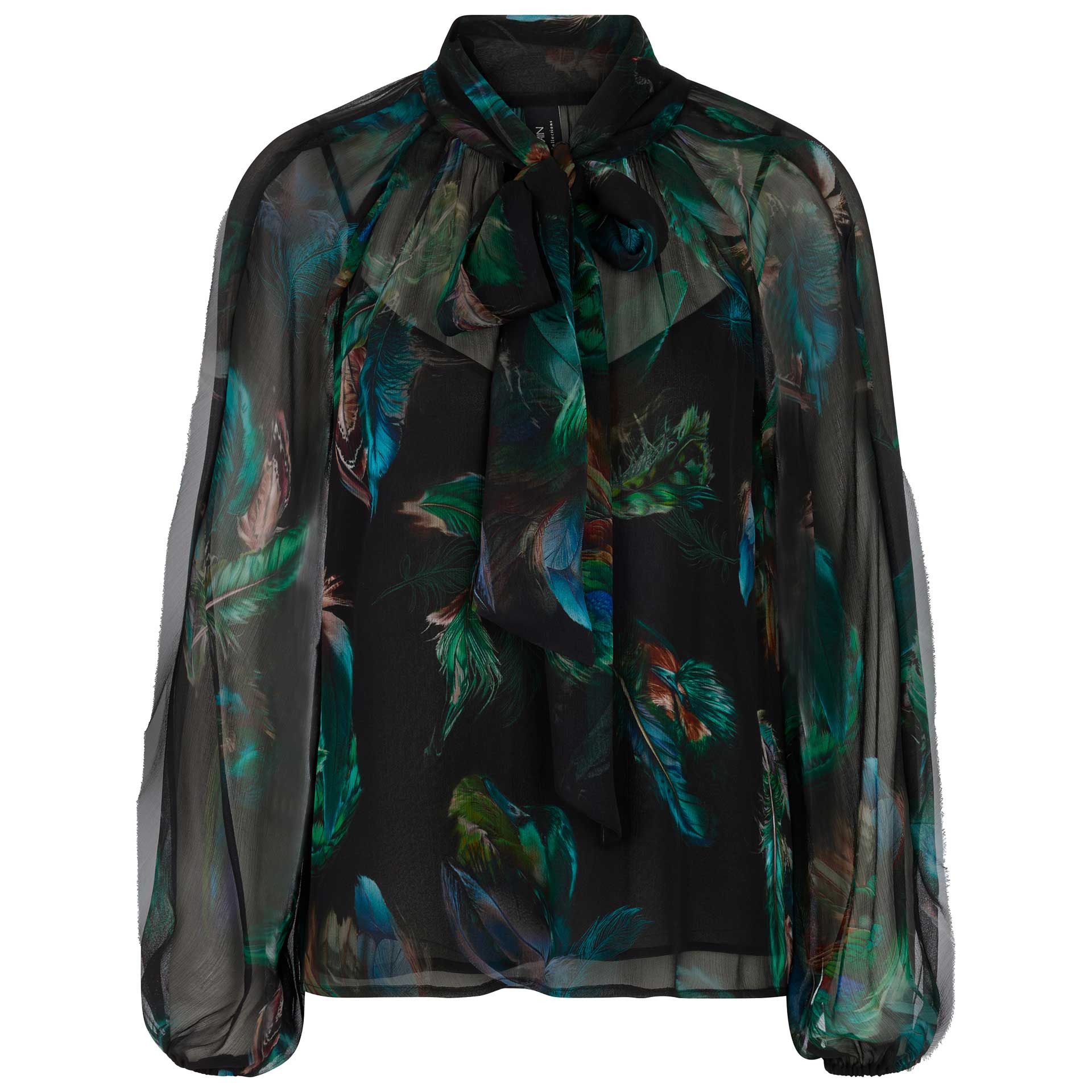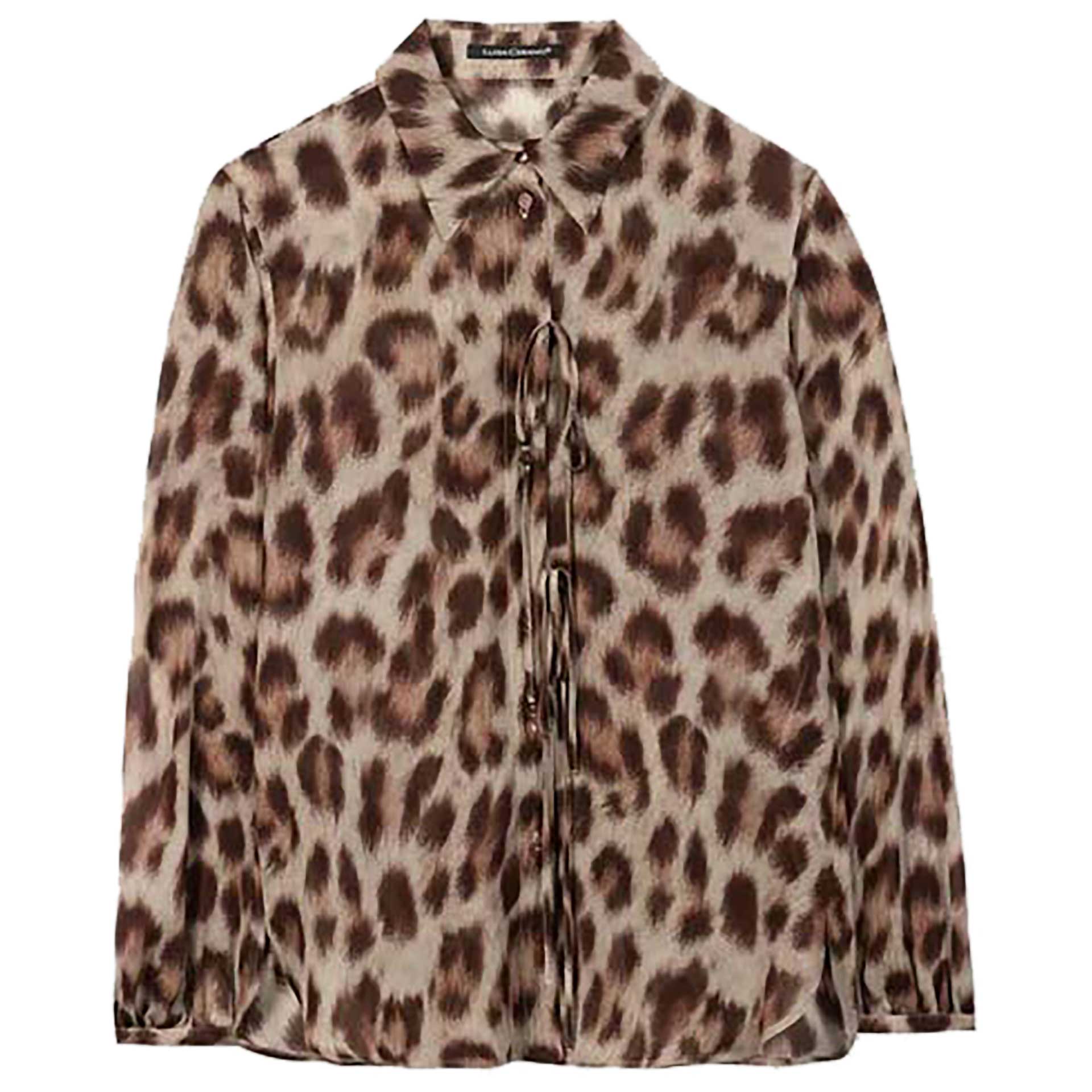 Deze blouse heeft driekwart mouwen, een kraag en een knoopsluiting aan de voorkant.