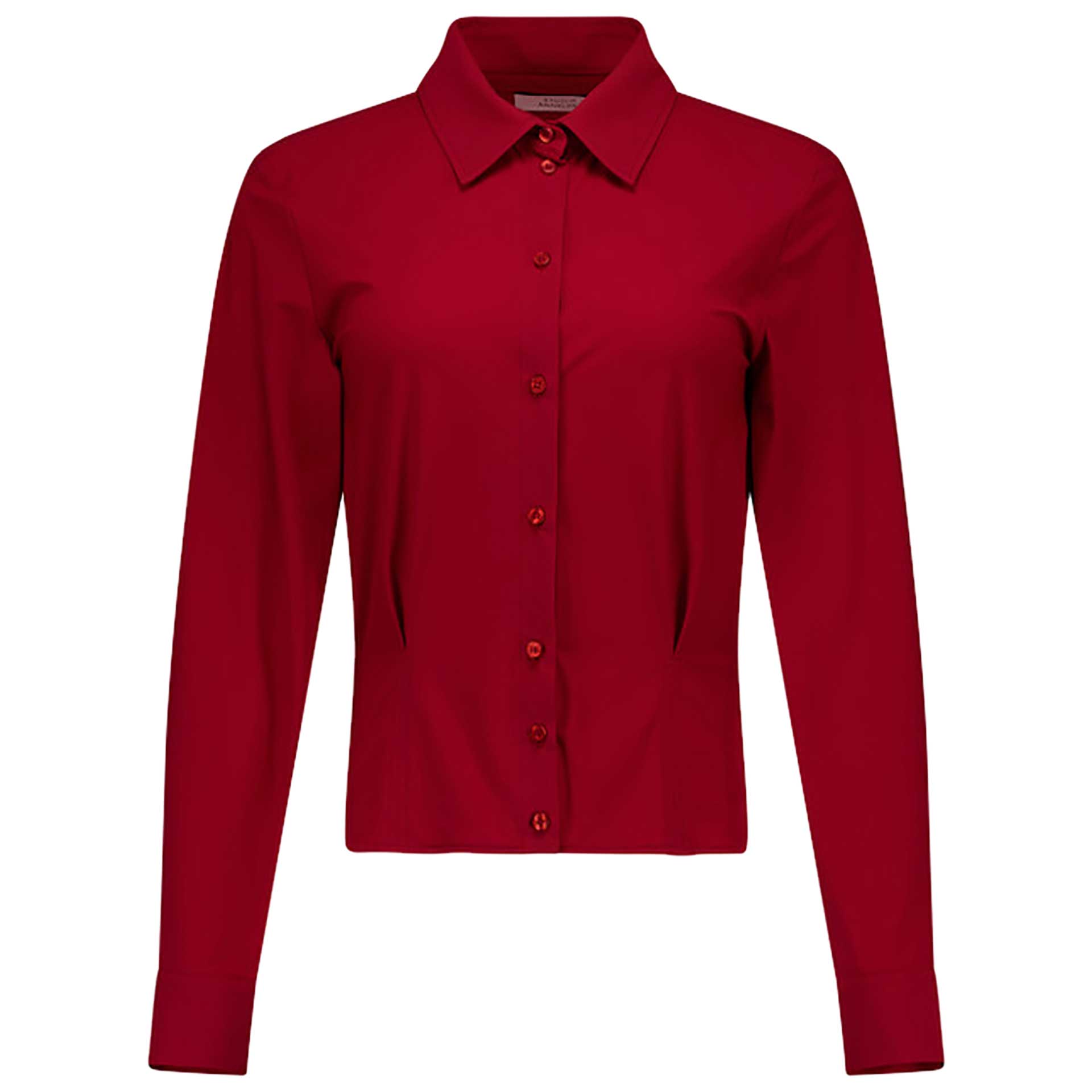 Deze blouse heeft korte mouwen, een kraag, een blinde knoopsluiting en een wafelstructuur.