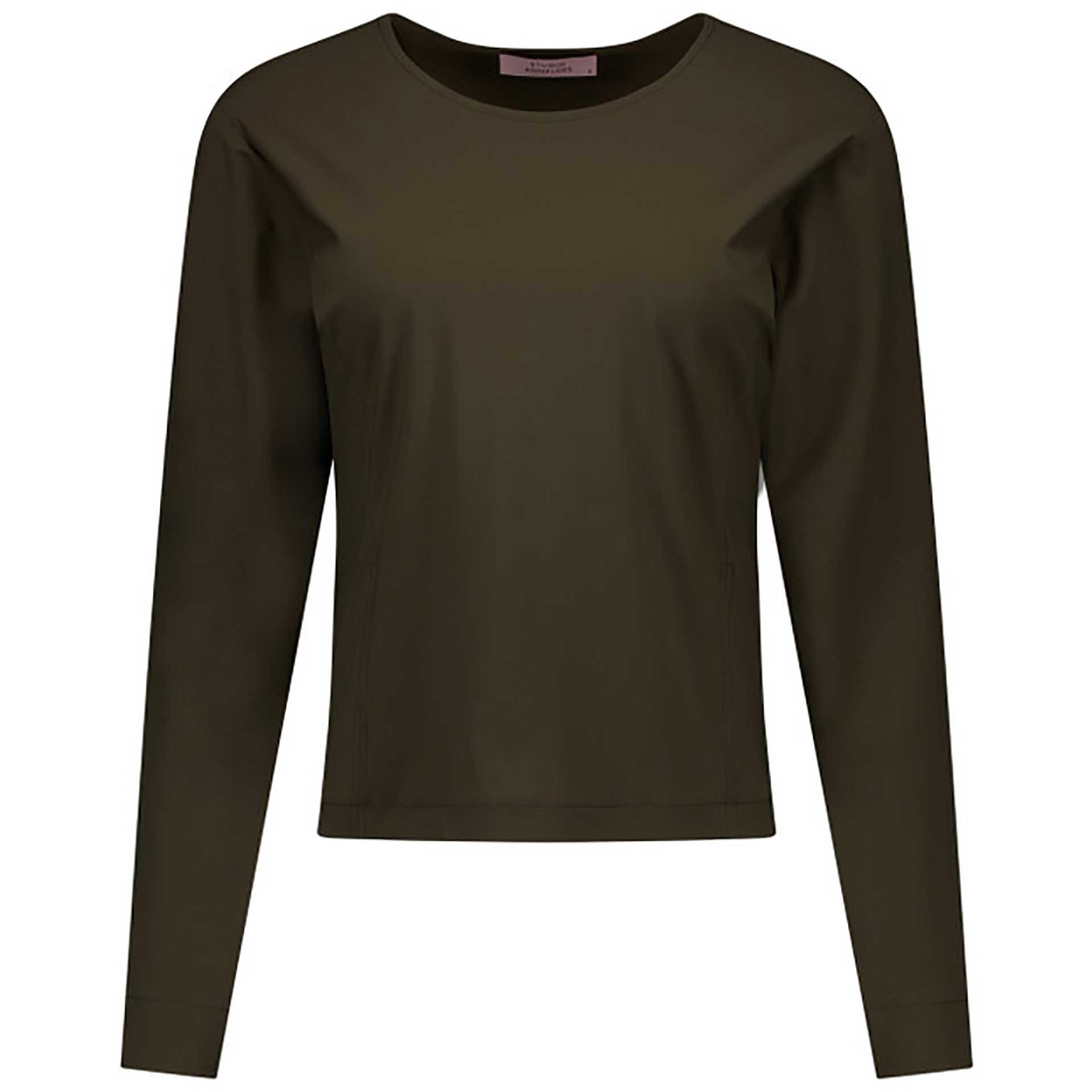 Dit T-shirt heeft driekwart mouwen en een ronde hals.