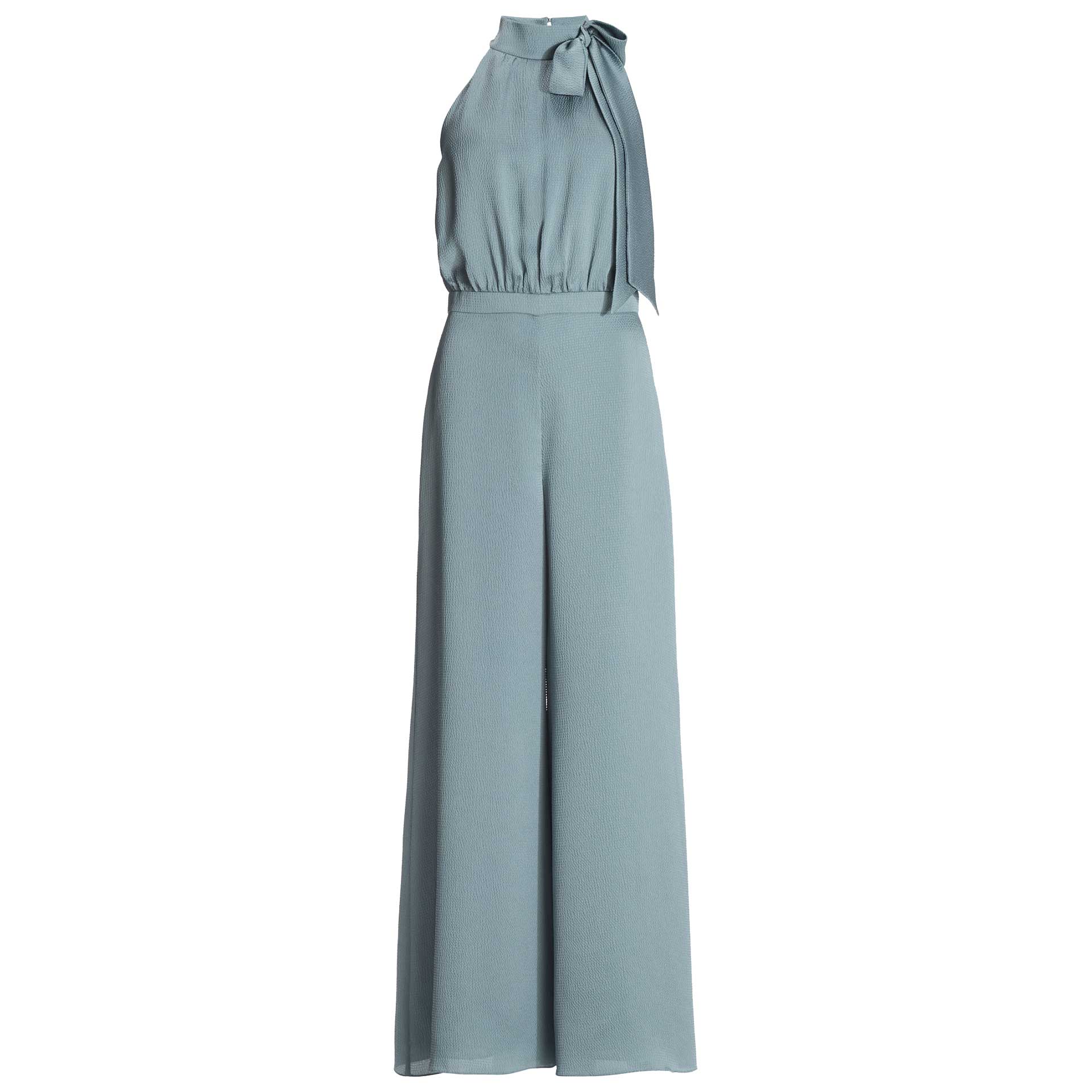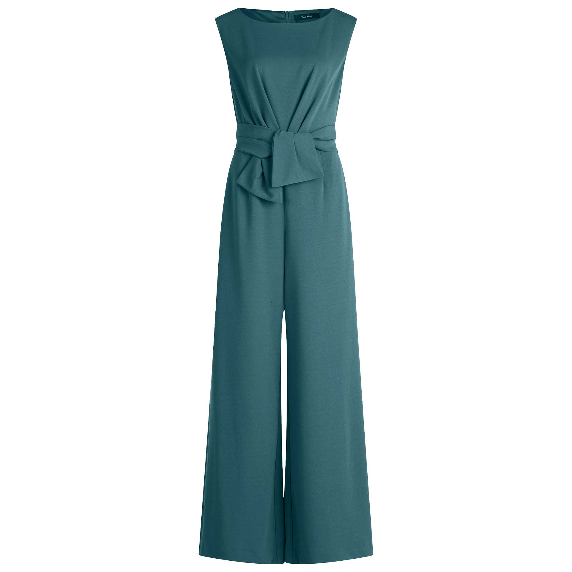 Dit is een mouwloze jumpsuit met een ronde hals en aan de achterkant een ritssluiting.